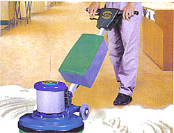 5、用裝有打泡器、地毯刷的單盤(pán)掃地機,以干泡刷洗地毯