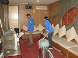 包括各種真皮、純毛、化纖質(zhì)地的地毯、掛毯、床毯、裝飾毯等.地毯處理是蒸汽桑拿機、多功能機清洗機、吸塵吸水機,結合專(zhuān)用消毒、除污藥劑對地毯蒸汽殺螨蟲(chóng)、殺菌、泡沫清洗除污、吸塵吸水機吸污水、風(fēng)干、梳理,后用防污噴劑處理,使地毯表面形成防水薄膜,達到防水防塵效果.